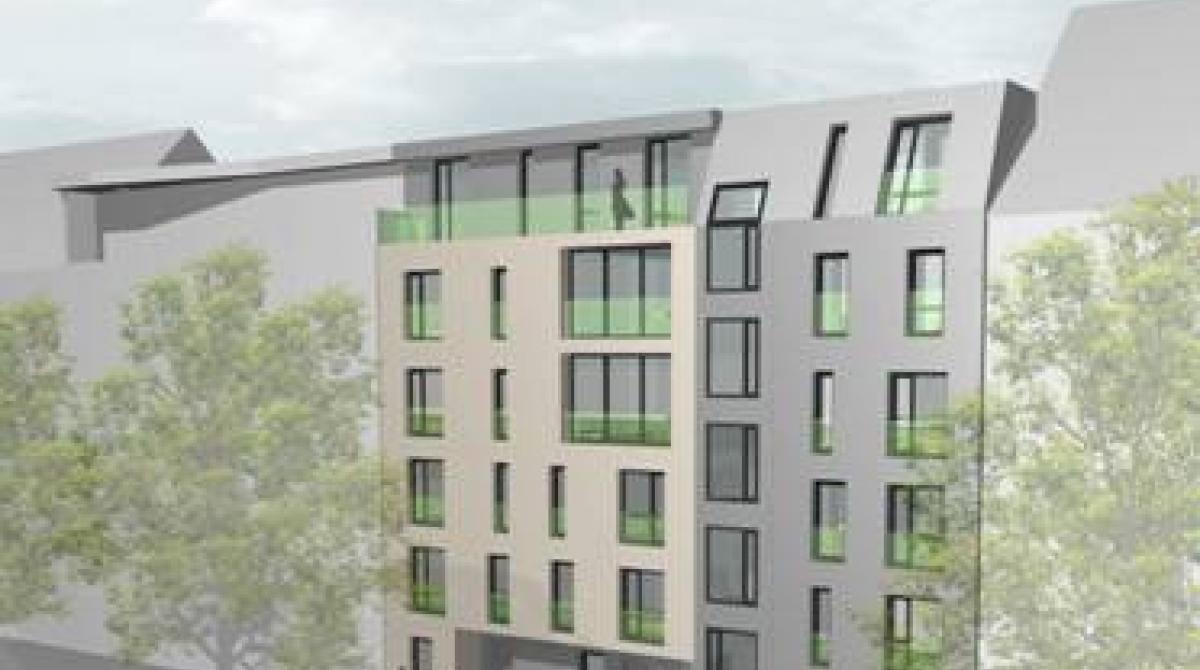21 Wohnungen zwischen 50 und 170 qm sind auf dem Eckgrundstück neben dem Zwillingshaus entstanden. Eine flexible Architektur ermöglicht modular kombinierbare, auch zweigeschossige und zum Teil übereinander verschränkte Wohnungen mit Orientierung in beide Richtungen.