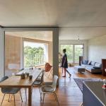 Eine helle Ziegelfassade mit tiefliegenden Holzfenstern und Loggien betont die monolithische Gestaltung des Gebäudes. Das Erdgeschoss nutzt geschickt den deutlichen Höhensprung zum Gartenhof für einen hohen Büroraum. Bei Bedarf sind zwei Einheiten im ersten Obergeschoss dem Büro zuschaltbar. Jede der neun Wohnungen ist in Ost-West-Richtung durchgesteckt und verfügt über eine Loggia. Die Grundrisse waren in Teilen flexibel gestaltbar.