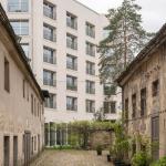 Im vollständig entsiegelten Gartenhof nehmen recycelte Steinbeläge, begehbare Moosböden und neu gepflanzte Waldkiefern die verwunschene Atmosphäre des angrenzenden denkmalgeschützten Hofes auf. Kletterpflanzen an den Mauern erhöhen den Biotopflächenfaktor. Der intensiv begrünte Dachgarten bietet weitere ökologisch wertvolle Lebensräume.